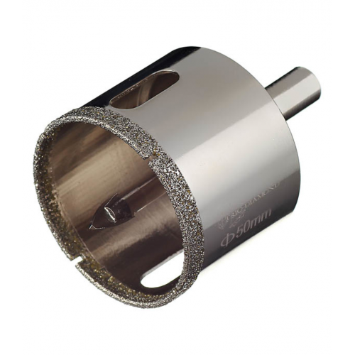 Предназначена для сверления отверстий в керамической, керамогранитной и кафельной плитке при обязательном водяном охлаждении. Равномерное распределение зерна на поверхности рабочей части обеспечивает аккуратное сверление материала без трещин и сколов. В комплект входит центрирующее сверло, которое исключает возможность смещения инструмента во время работы. Материал абразива – синтетические алмазы, зерно 60