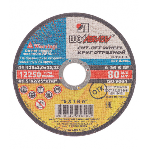 Круг отрезной по металлу Луга 125х22х2 мм