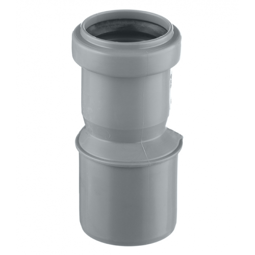 Внутренняя система канализации Ostendorf HT. Переход эксцентрический (редукция) предназначен для перехода с гладкой части трубы или фитинга меньшего диаметра на раструб трубы или фитинга большего диаметра. Переход выполнен снаружи раструба большего диаметра.