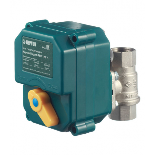 Кран шаровой с электроприводом латунный Neptun Bugatti Pro (NEPBugPro12-12) 1/2 ВР(г) х 1/2 ВР(г) мини прямой 12 В