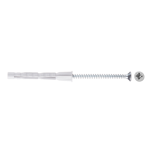 Дюбель универсальный нейлоновый в полнотелых основаниях работает как распорный дюбель. В пустотелых и листовых материалах скручивается в узел. Бортик предотвращает продавливание дюбеля в отверстие при креплении к листовым и пустотелым основаниям. Распор дюбеля происходит в четырёх направлениях, что способствует более эффективной фиксации. Форма дюбеля предотвращает его прокручивание в отверстии в момент установки. В комплекте универсальные шурупы с потайной головой 4х60.