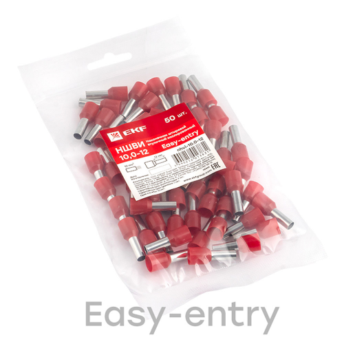 Наконечник штыревой втулочный изолированный EKF PROxima НШВИ 12 мм х 10 кв. мм (50 шт.)
