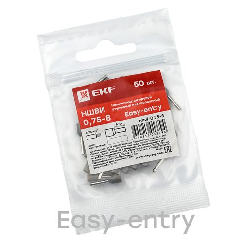 Наконечник штыревой втулочный изолированный EKF PROxima НШВИ 8 мм x 0,75 кв. мм (50 шт.)