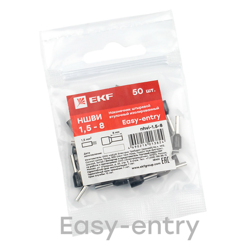Наконечник штыревой втулочный изолированный EKF PROxima НШВИ 8 мм x 1,5 кв. мм (50 шт.)