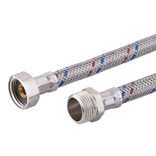 резиновый шланг (EPDM) в оплетке из нержавеющей стали, гайка и штуцер – латунь.