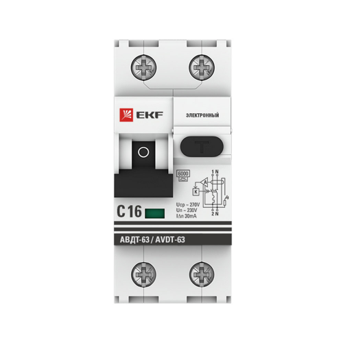 Автомат дифференциальный EKF АВДТ-63 (DA63-16-30e) 16А 30 мА 1P+N тип C 6 кА