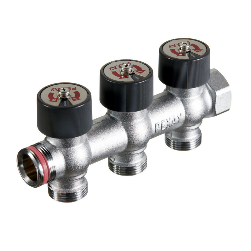 Регулирующий коллектор с плавной регулировкой (чёрный вентиль) G3/4 3 отвода G3/4 EK Rehau