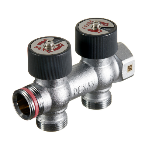 Регулирующие вентили оснащены маркировкой потребителей и двусторонним диском с цветовой индикацией типа систем. Подключение со стороны системы внутренняя резьба G 3/4.