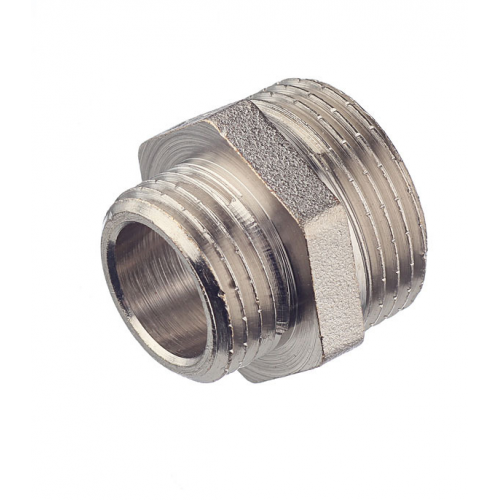 Предназначен для соединения элементов трубопровода разного диаметра. Выполнен из латуни CW617N (евростандарт EN12165) горячим штампованием с последующим никелированием. Резьба обоих патрубков – наружная (тип – цилиндрическая трубная, ГОСТ 6357, ISO 228, EN10226). Насечки на резьбе способствуют удержанию герметизирующего материала (например, сантехнического льна). Наличие шестигранного (под гаечный ключ) участка корпуса облегчает монтаж соединения. Имеет один выход с наружной резьбой 1/2" (16 мм) и другой с наружной резьбой 3/4" (20 мм).