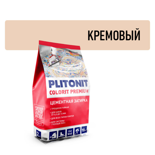 Затирка цементная Plitonit Colorit premium кремовая 2 кг