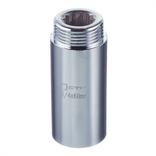 Предназначен для удлинения резьбового соединения на 60 мм. С одной стороны имеет внутреннюю резьбу 3/4" (20 мм), с другой стороны наружную 3/4" (20 мм).
