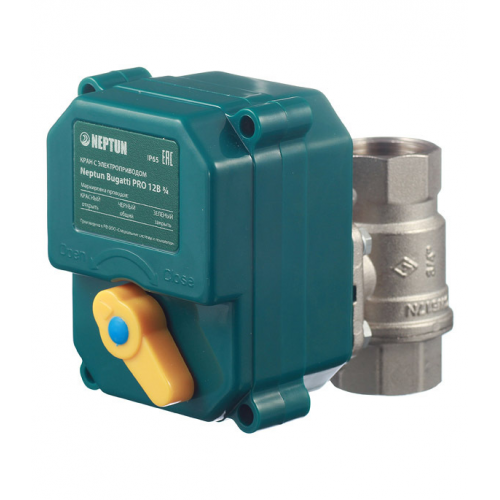 Кран шаровой с электроприводом латунный Neptun Bugatti Pro (NEPBugPro12-34) 3/4 ВР(г) х 3/4 ВР(г) мини прямой 12 В