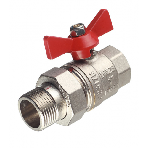 Кран шаровой латунный Valtec Base (VT.227.N.06) 1 ВР(г) х 1 НР(ш) бабочка с полусгоном прямой