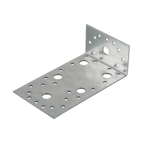 Изготовлен из оцинкованной стали толщиной 2 мм. Имеет отверстия диаметром 5 мм под саморезы или гвозди, 10 мм под болт или анкер.