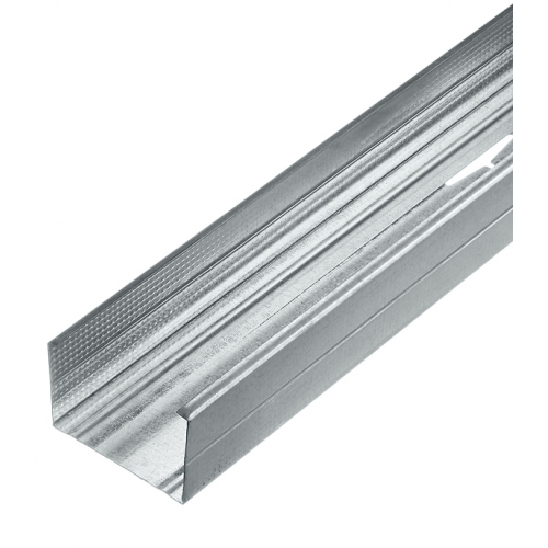 Предназначен для использования в качестве вертикального элемента каркасов, предназначенных для перегородок и обшивок стен. Монтируется с профилем направляющим 75х40.