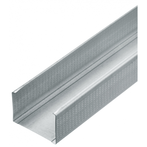 Предназначен для использования в качестве вертикального элемента каркасов, предназначенных для перегородок и обшивок стен. Монтируется с профилем направляющим 75х40.