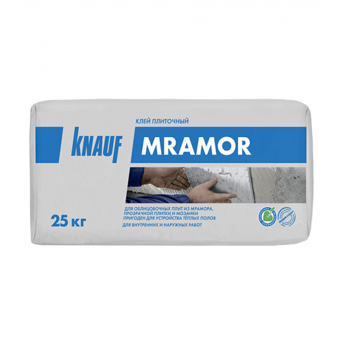 Клей плиточный белый Кнауф-Мрамор предназначен для облицовки внутри и снаружи зданий (включая цоколь): – Стен плитами из мрамора, гранита, и других природных камней, стекломозаикой, стеклянной и прозрачной плиткой, керамической плиткой, керамогранитом и искусственным камнем любого размера и веса. – Пола плитами из мрамора, гранита, и других природных камней, стекломозаикой, стеклянной и прозрачной плиткой, керамической плиткой, керамогранитом и искусственным камнем любого размера. Основание должно быть ровным, недеформирующимся, например, бетон, стяжки, гипсовые и цементно-песчаные штукатурки, конструкции из гипсокартонных (ГСП) и гипсоволокнистых (ГВЛ) листов, цементные плиты «Аквапанель» и др. Максимально допустимая нагрузка при облицовке гипсокартона (плитка плюс клеевой раствор) – не более 50 кг/кв. м. Рекомендуется для поверхностей с повышенными колебаниями температуры (фасады зданий и цоколи, входные группы, балконы, террасы, полы с подогревом внутри помещений, крытые бассейны). Класс клея согласно ГОСТ Р 56387-2018 – C2