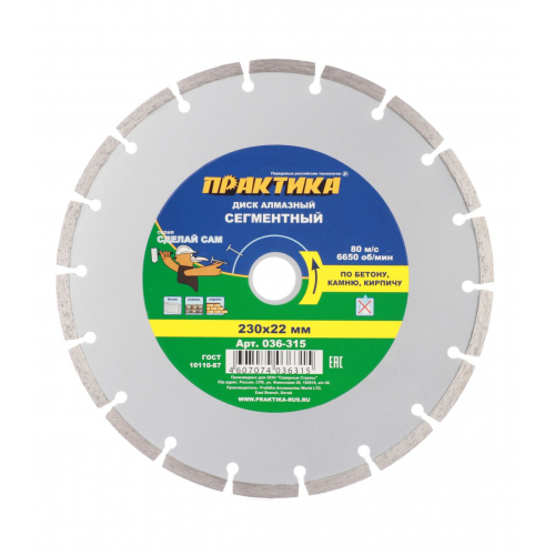 Диск алмазный по бетону Практика (036-315) 230x22,2x2,4 мм мм сегментный сухой рез
