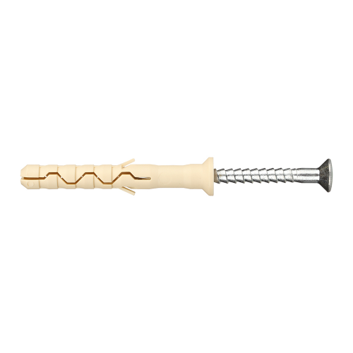 Предназначен для легких креплений (небольшие нагрузки) в твердые материалы: полнотелый кирпич, бетон, природный камень. Нейлон обеспечивает надежное сцепление с материалом основания. Резьбовой оцинкованный гвоздь повышенной прочности заранее установлен в дюбель.