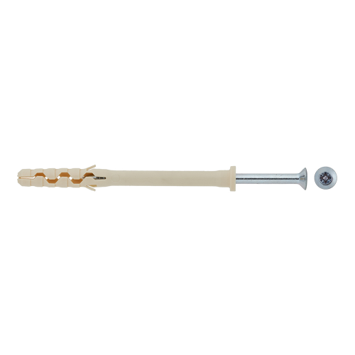 Предназначен для легких креплений (небольшие нагрузки) в твердые материалы: полнотелый кирпич, бетон, природный камень. Нейлон обеспечивает надежное сцепление с материалом основания. Резьбовой оцинкованный гвоздь повышенной прочности заранее установлен в дюбель.